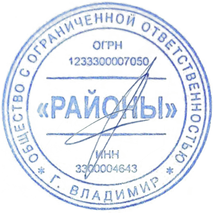 ООО "РАЙОНЫ" 600000,г.Владимир,ул.Стрелецкая,д.1,кв.6 ИНН 3300004643, КПП 330001001 |