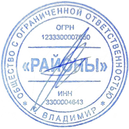 ООО "РАЙОНЫ" 600000,г.Владимир,ул.Стрелецкая,д.1,кв.6 ИНН 3300004643, КПП 330001001 |