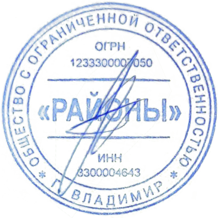 ООО "РАЙОНЫ" 600000,г.Владимир,ул.Стрелецкая,д.1,кв.6 ИНН 3300004643, КПП 330001001 |